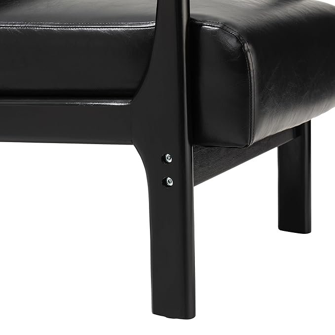 - Design: This vintage-look PU leather armchair is designed with a solid wood frame bringing the mid-century modern style to your home. Also the walnut color frame of this small space chair fits the solemn elegance of your room